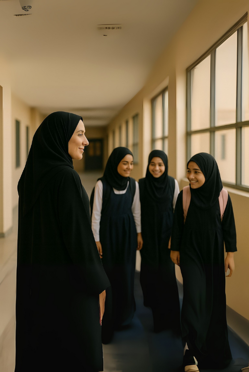 كانت تسير في ممرات المدارس كأخصائية اجتماعية، ترافق الطالبات في مراحل عمرية مختلفة، وتجلس مع الأمهات، تستمع لهمومهن، وتكون جسرًا بين القلق والاطمئنان، وبين التشتّت والاتزان.